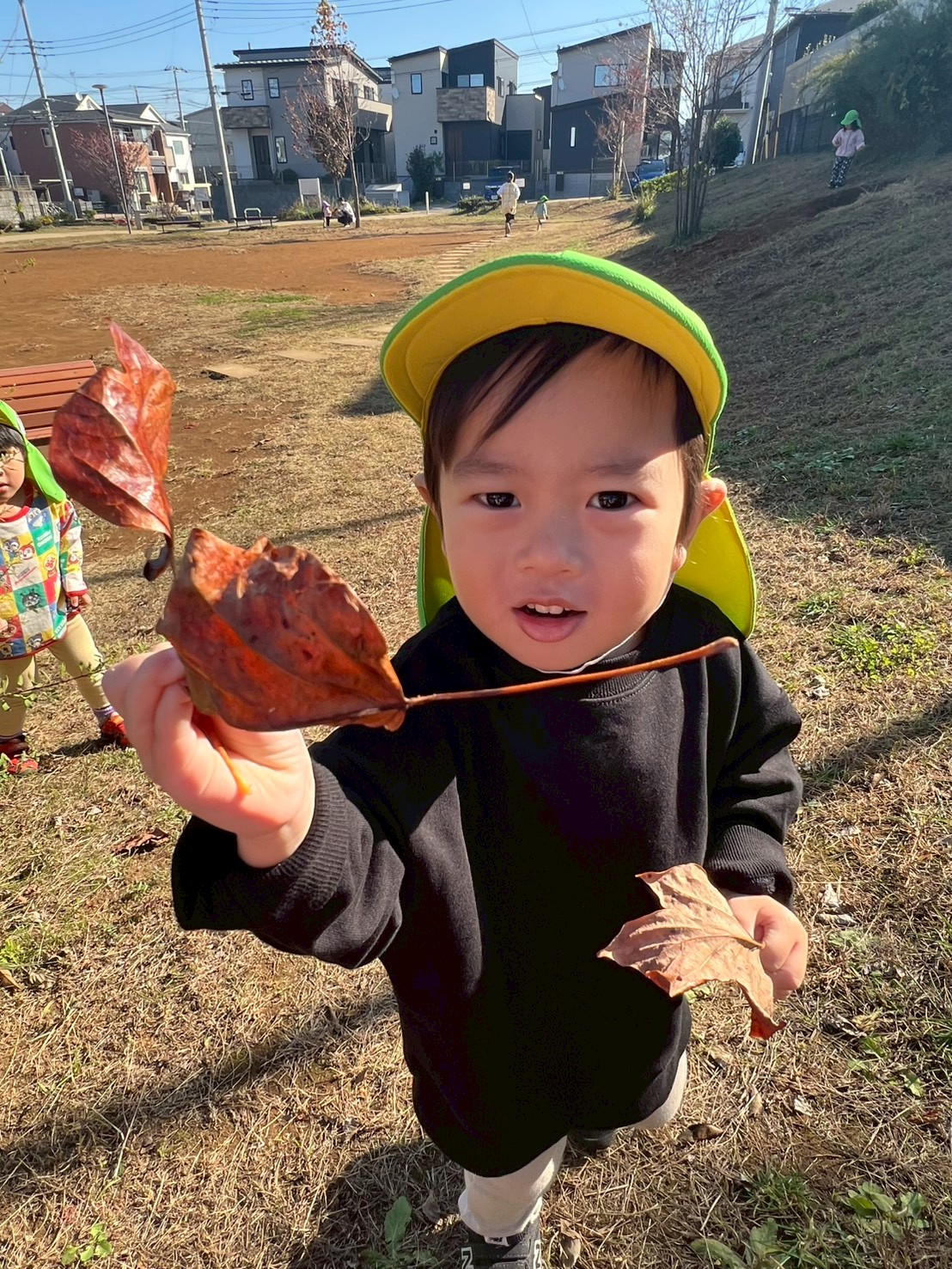 遊具や落ち葉拾い、どんぐり拾いなど秋の季節を感じながら