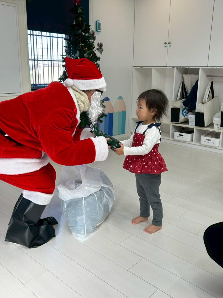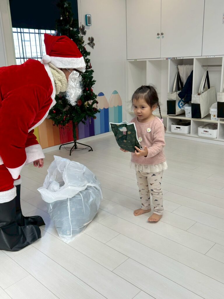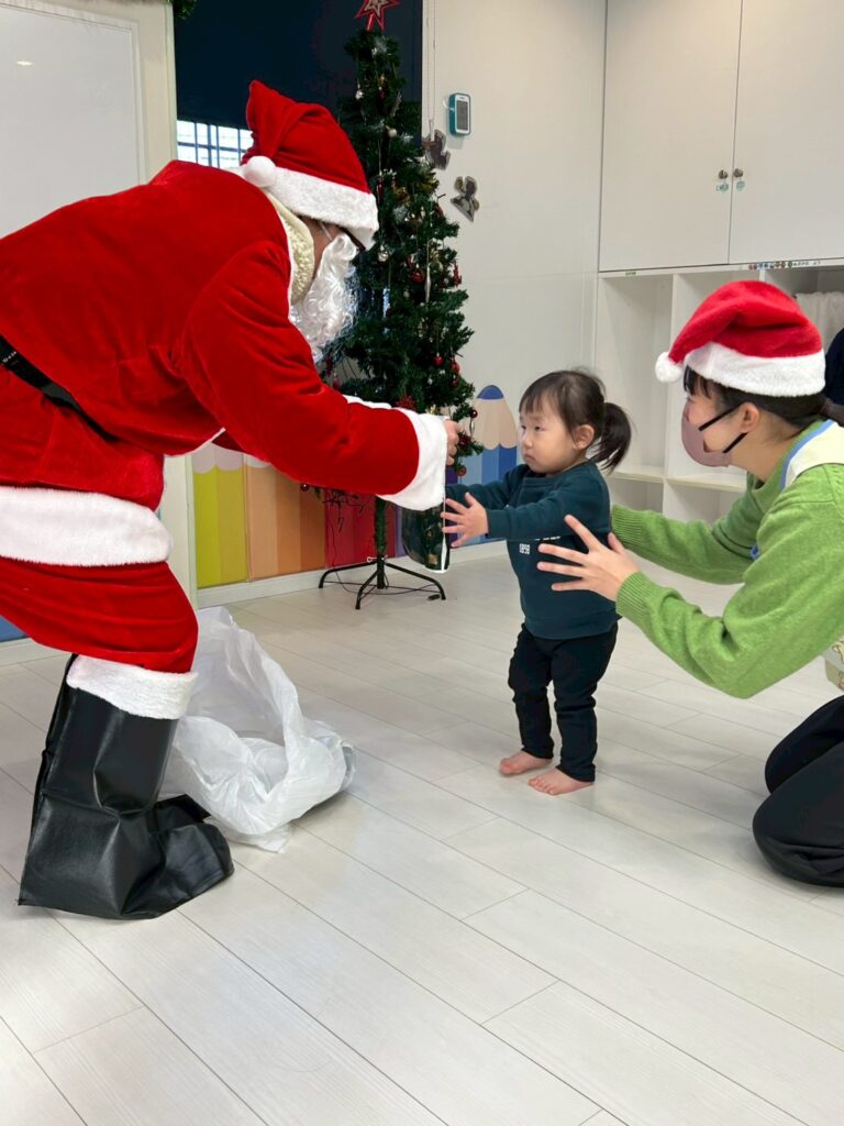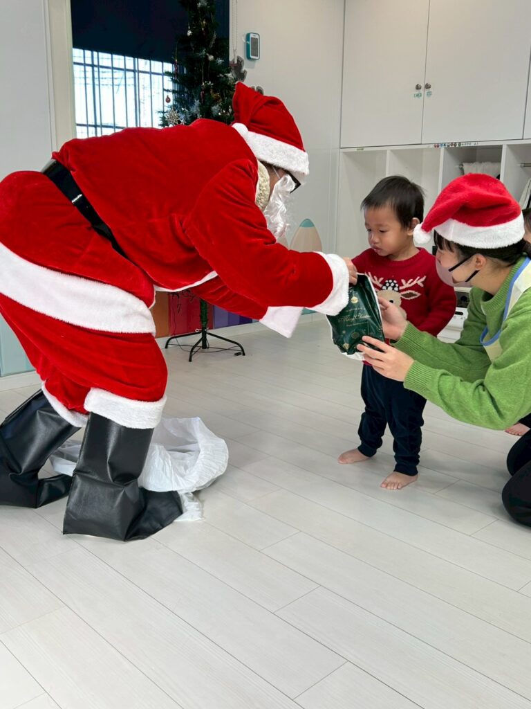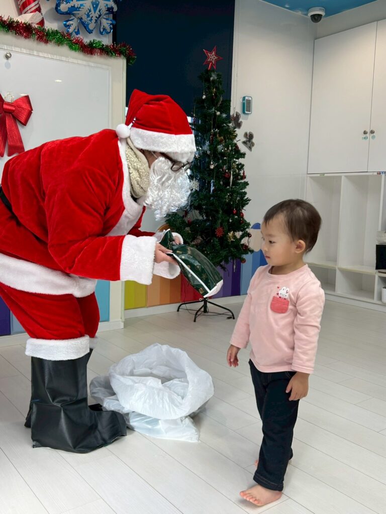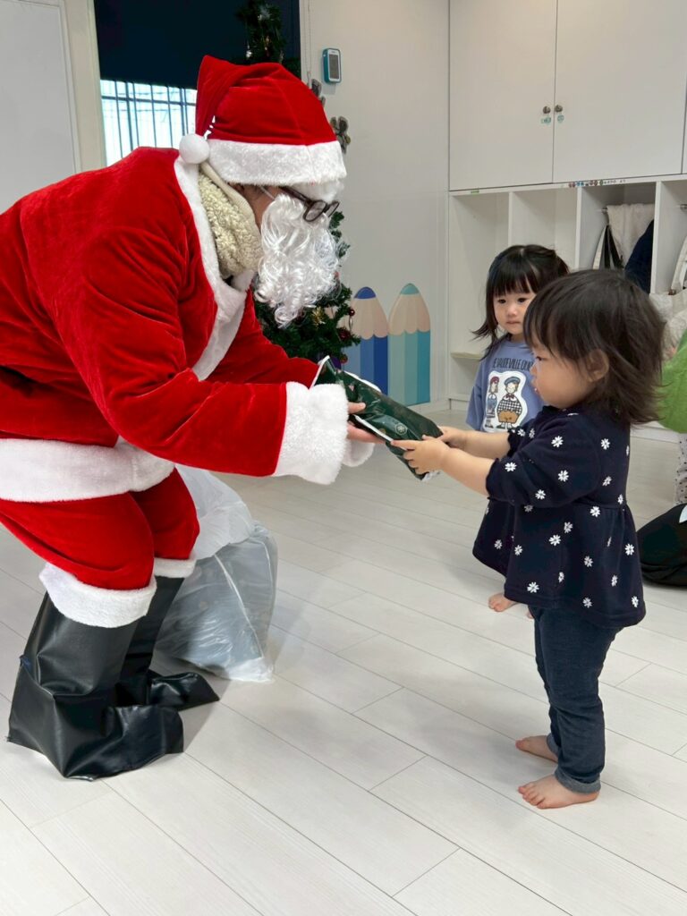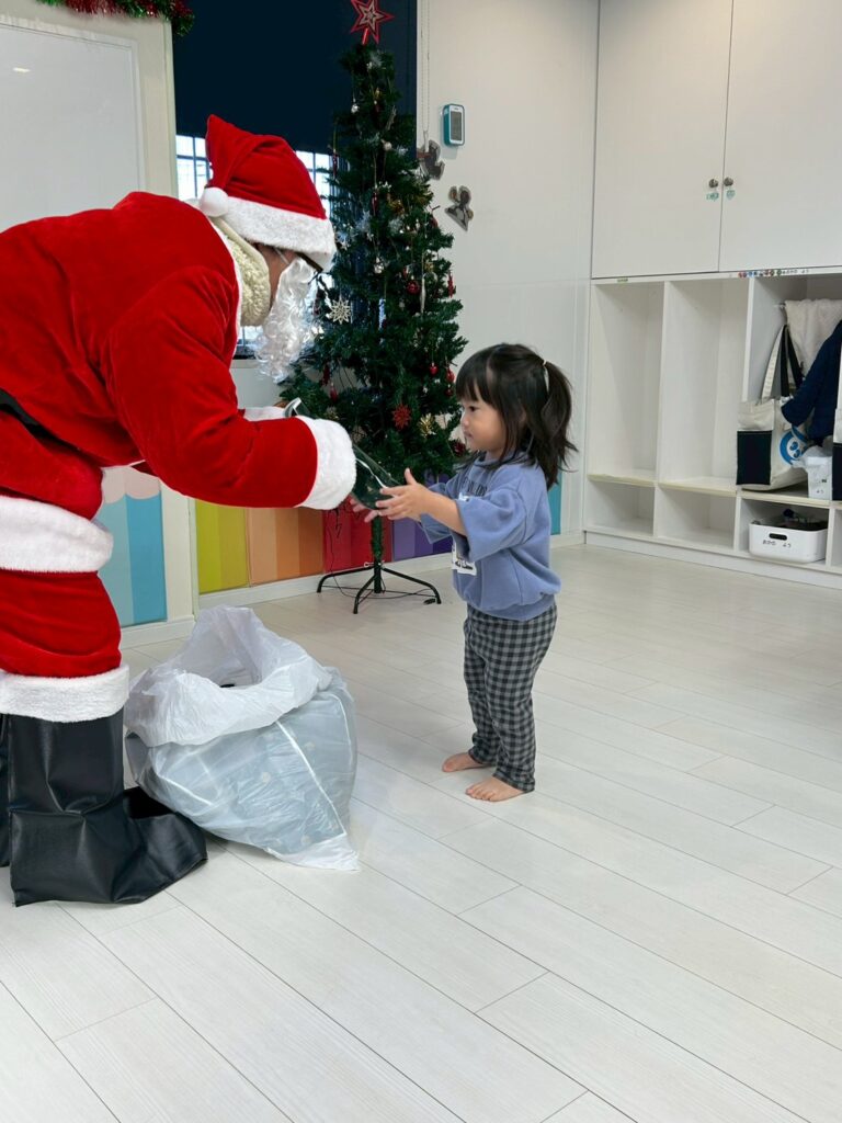 サンタさんを見て泣いちゃう子もいましたが、しっかりプレゼントを受け取ることができました!😅