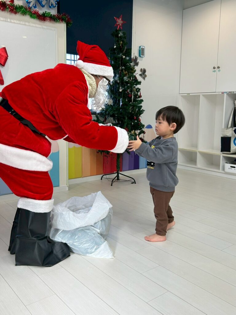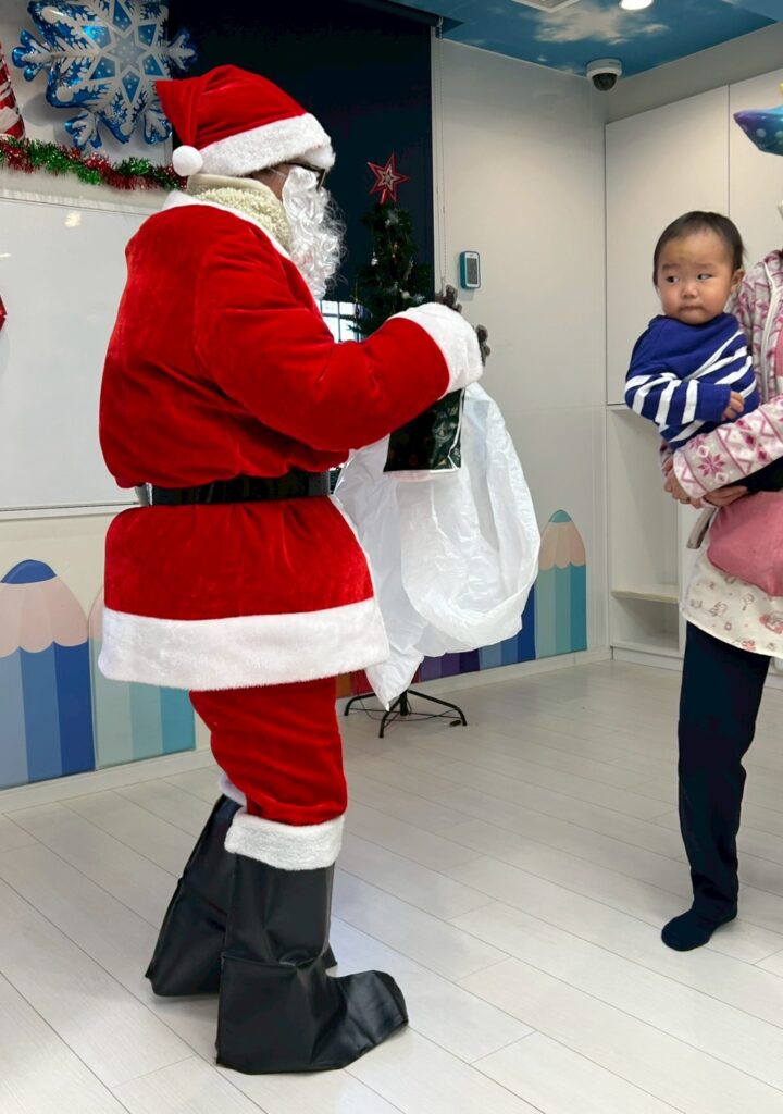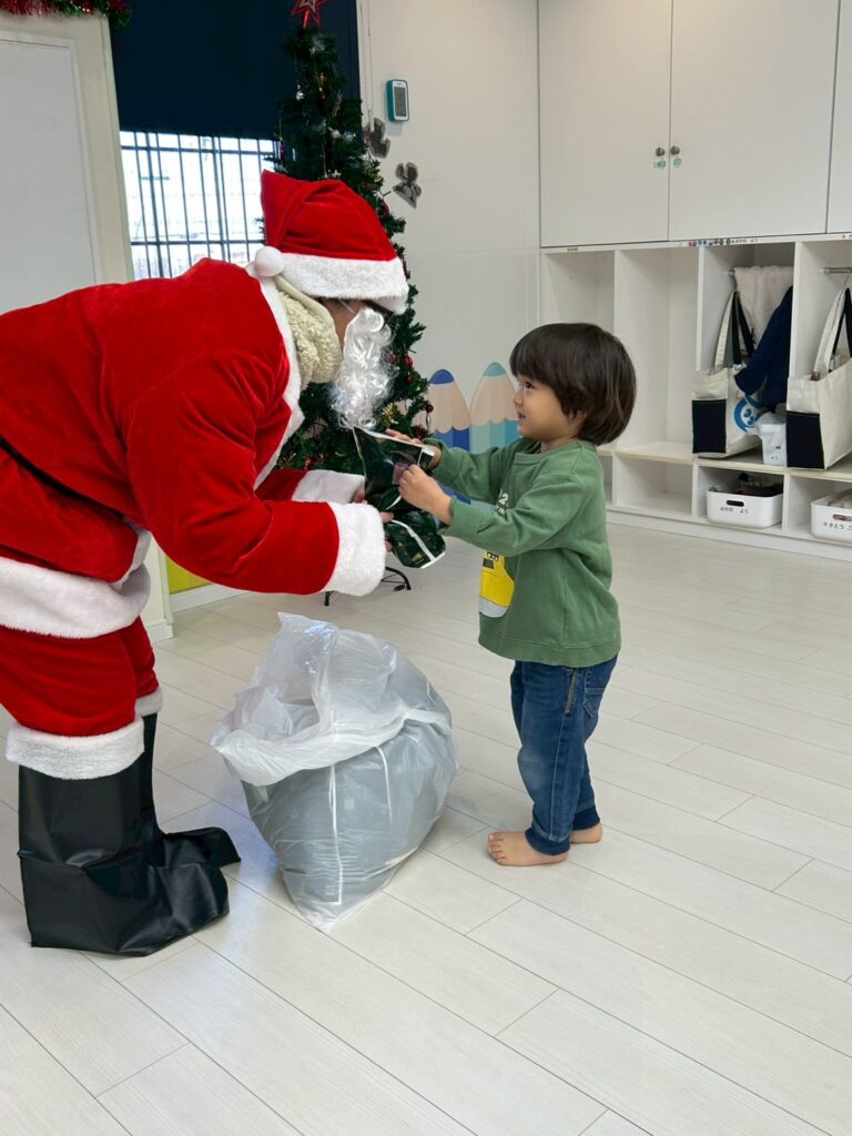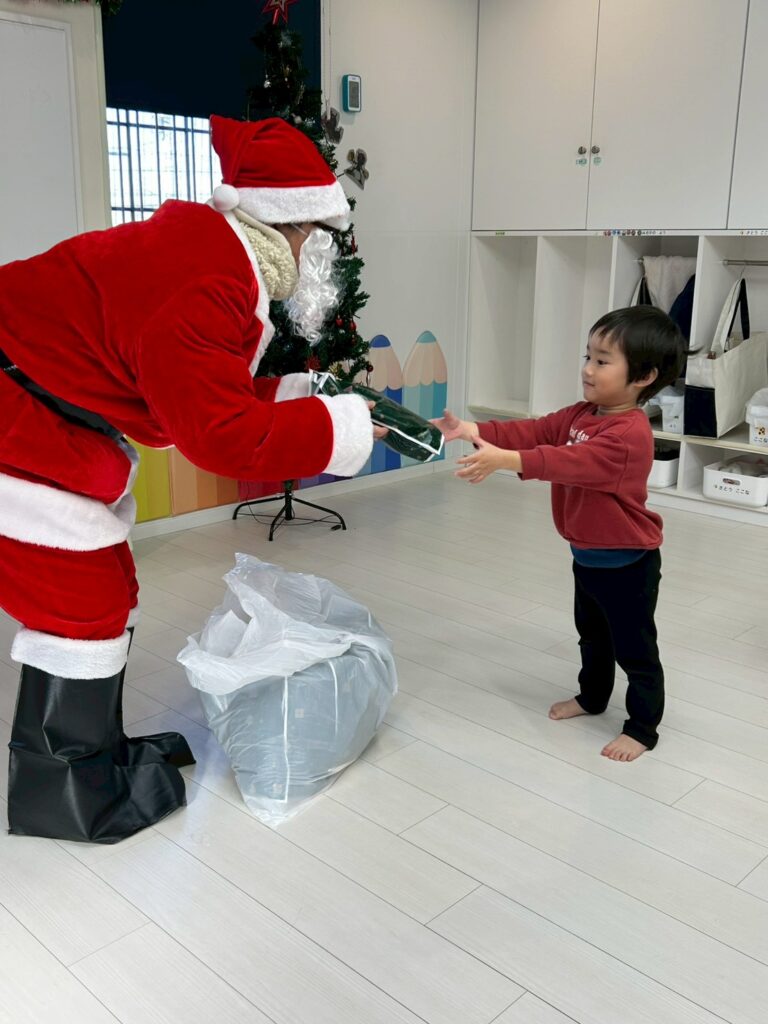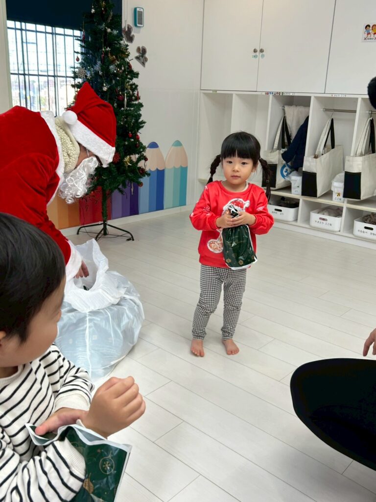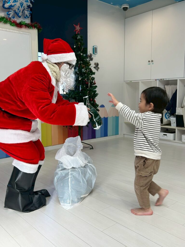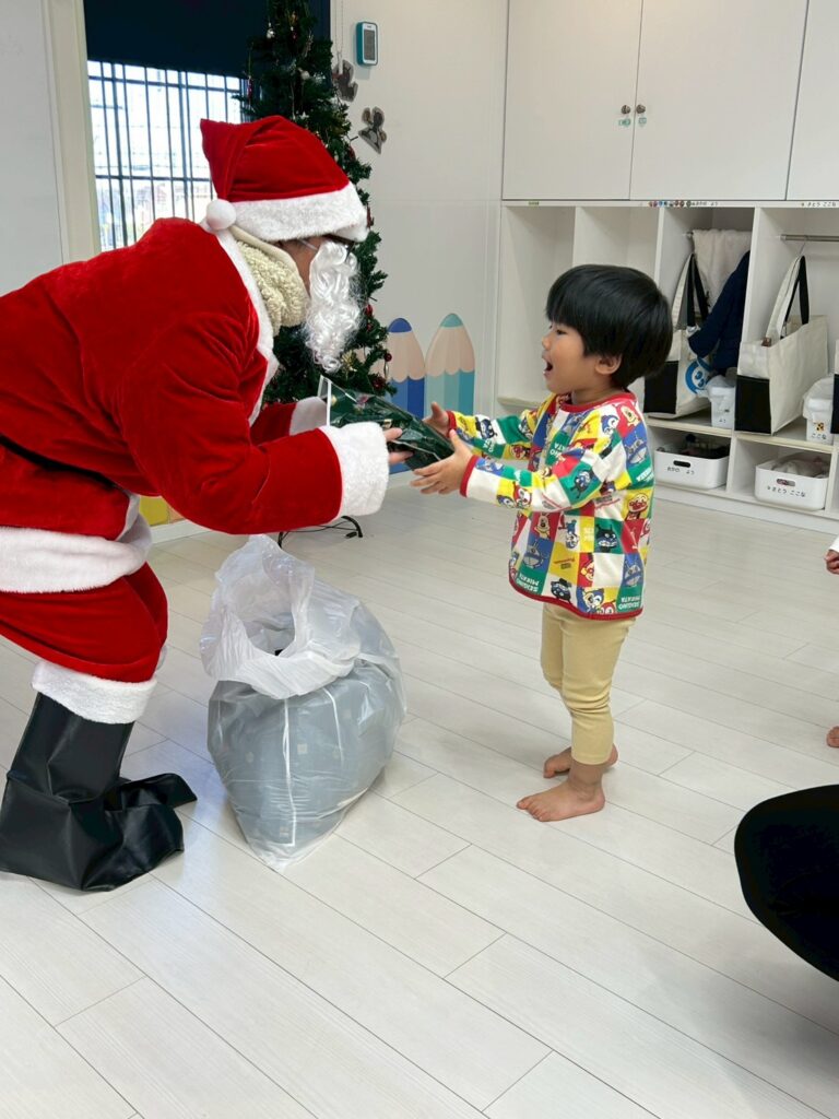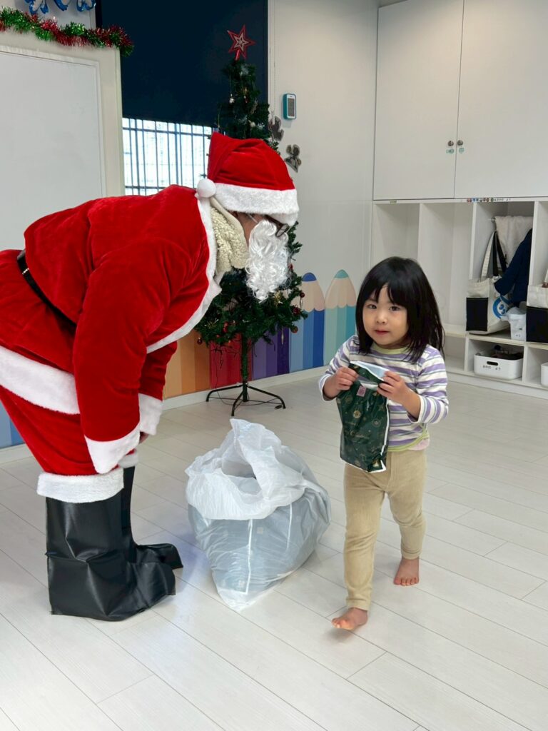 サンタさんを見て泣いちゃう子もいましたが、しっかりプレゼントを受け取ることができました!😅